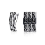 Ohrringe mit Clip aus Sterlingsilber in Form eines leicht gebogenen Rechtecks mit hübschen, glänzenden Mustern, die den oxidierten Teil des Schmuckstücks umarmen. Diese trendigen Ohrringe sind ideal, um Ihre Ohren im Alltag zu schmücken, und werden alle Blicke auf sich ziehen.